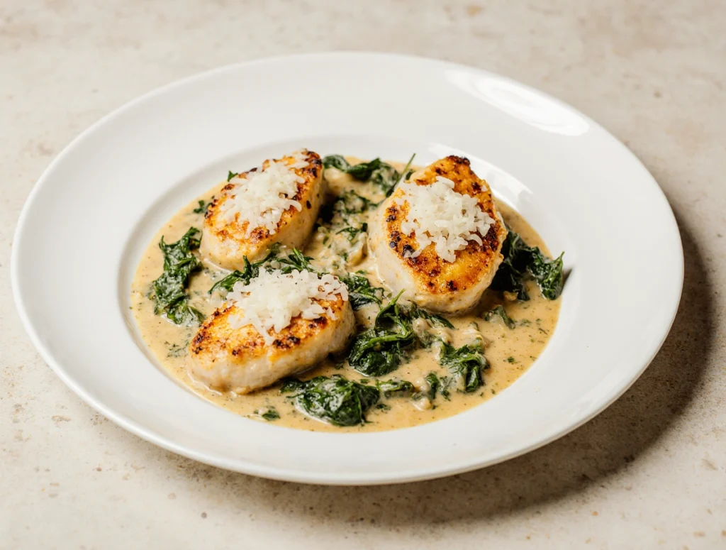 Tuscan-style chicken brings together spinach, garlic, parmesan, and cream in a way that feels both fresh and indulgent. It is rich without being heavy, making it ideal for a relaxed but elegant dinner.
